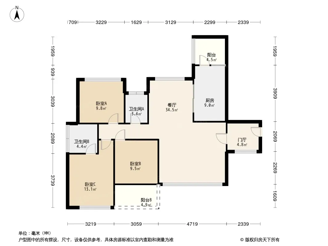 户型齐全,主打户型方正,明卫,客厅朝南,双阳台三居