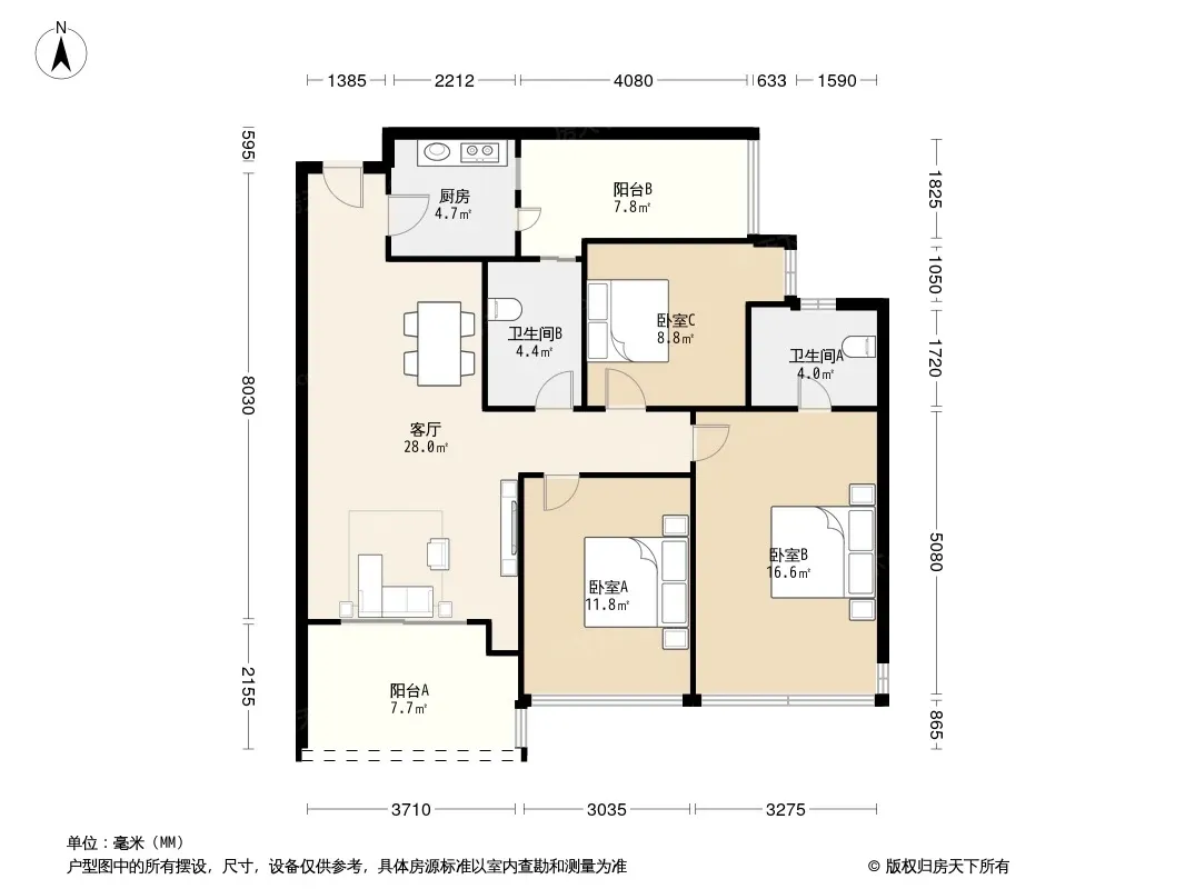 户型齐全,主打户型方正,明厨,明卫三居