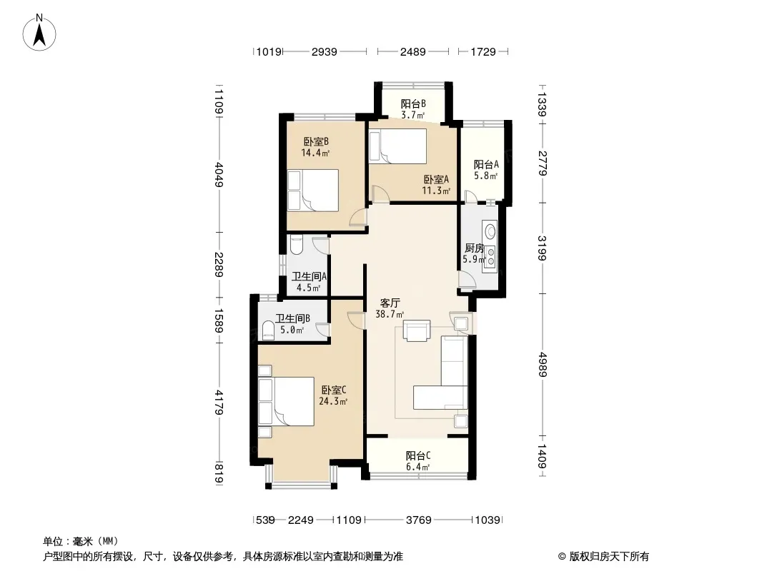 *获取完整户型报告,同时会有免费语音讲解服务
