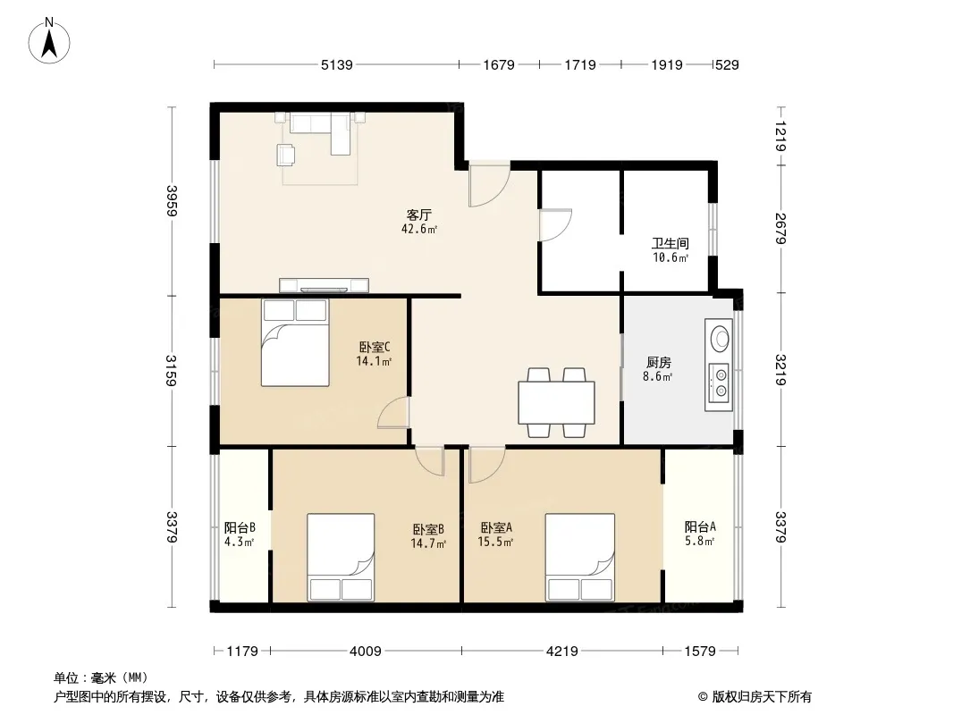 户型齐全,主打户型方正,明厨,明卫,独立衣帽间,客厅朝南三居
