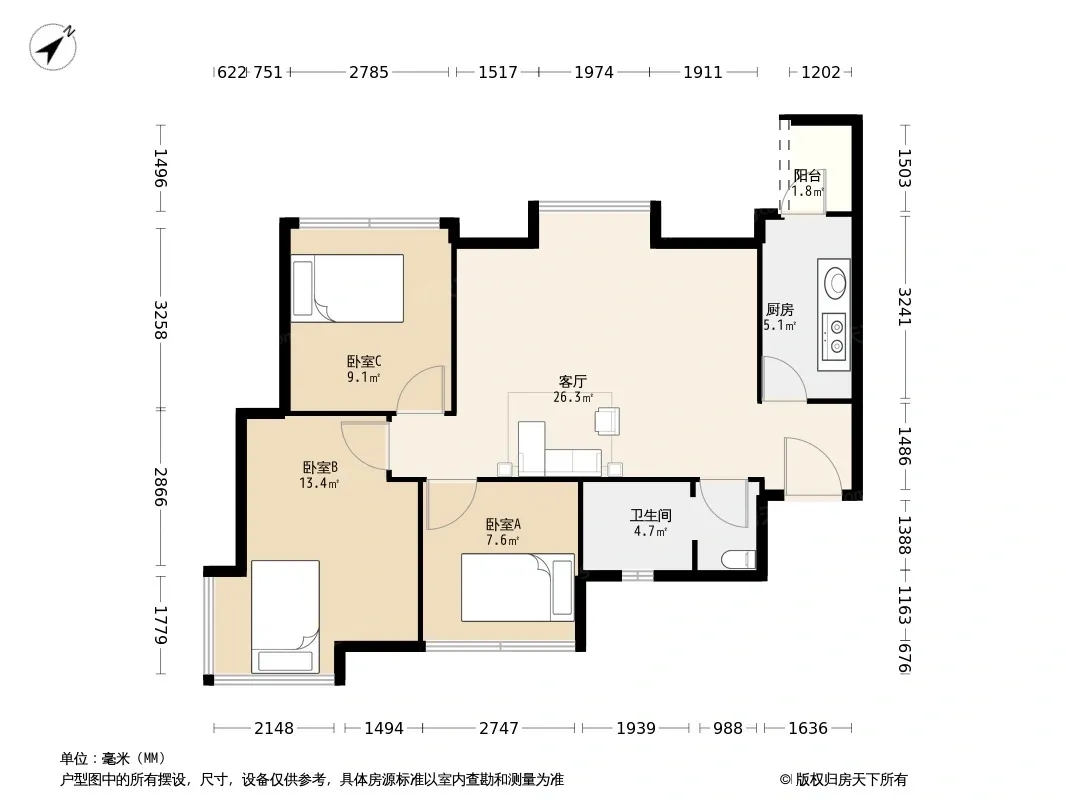 *获取完整户型报告,同时会有免费语音讲解服务