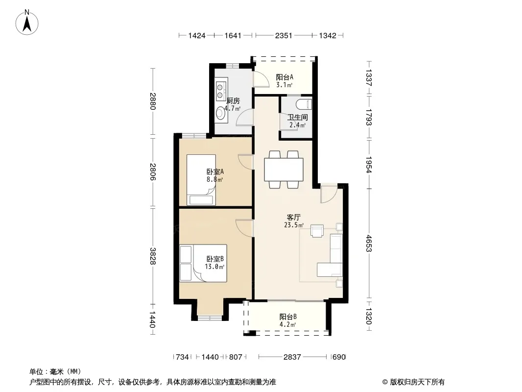 户型齐全,主打明厨,双阳台,主卧朝南三居