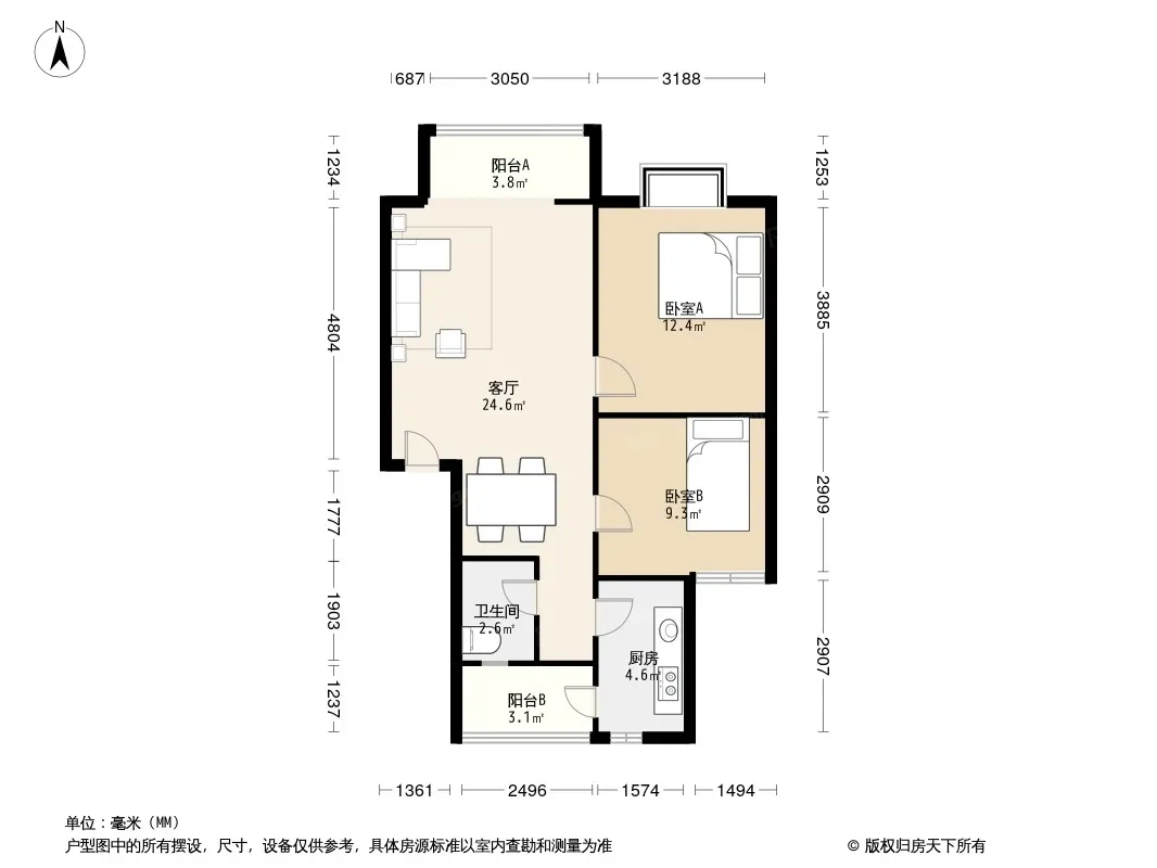 户型齐全,主打明厨,双阳台,主卧朝南三居
