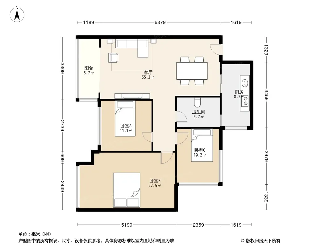 户型齐全,主打明厨三居