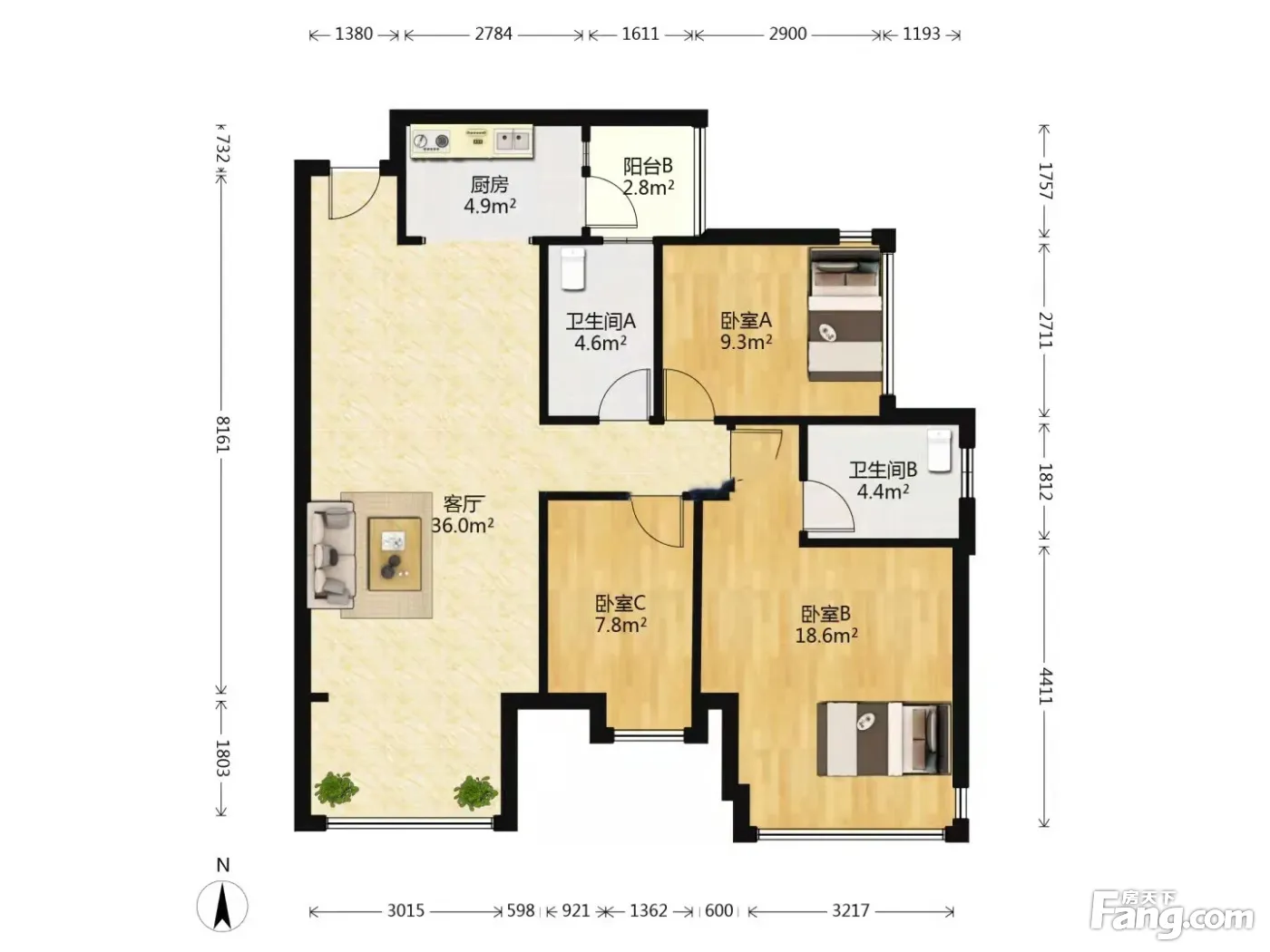 天誉南庭 3室1厅 南