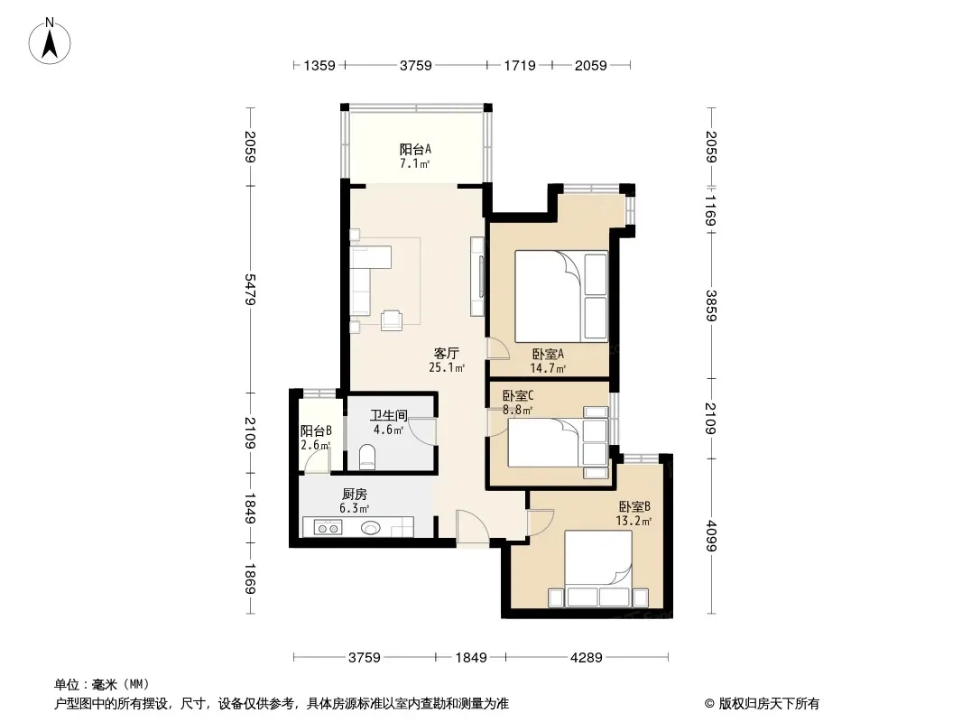 保利创智锦城 3室1厅 西北