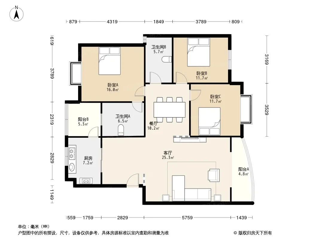 户型齐全,主打户型方正,明卫,明厨,主卧朝南三居