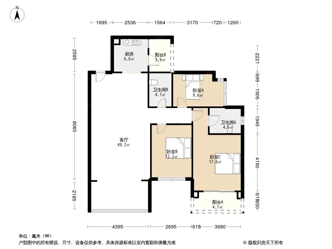 户型齐全,主打户型方正,明卫,明厨,客厅朝南,全明格局,双卧朝南三居