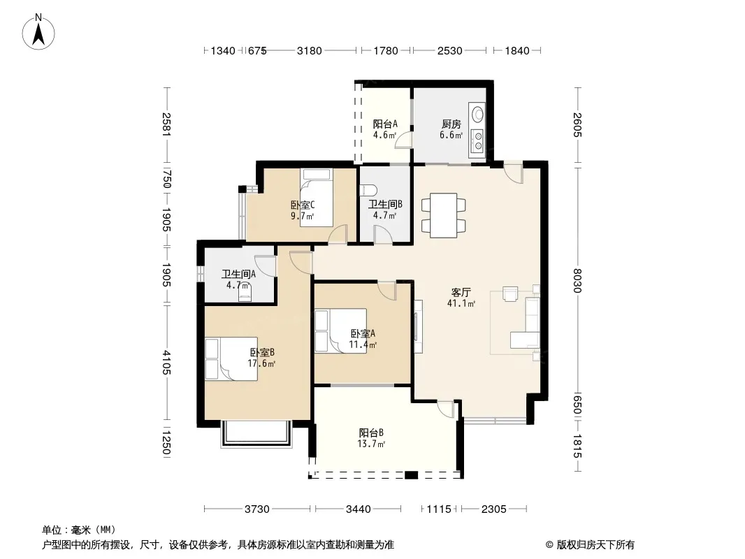 户型齐全,主打户型方正,明卫,明厨,客厅朝南,全明格局,双卧朝南三居