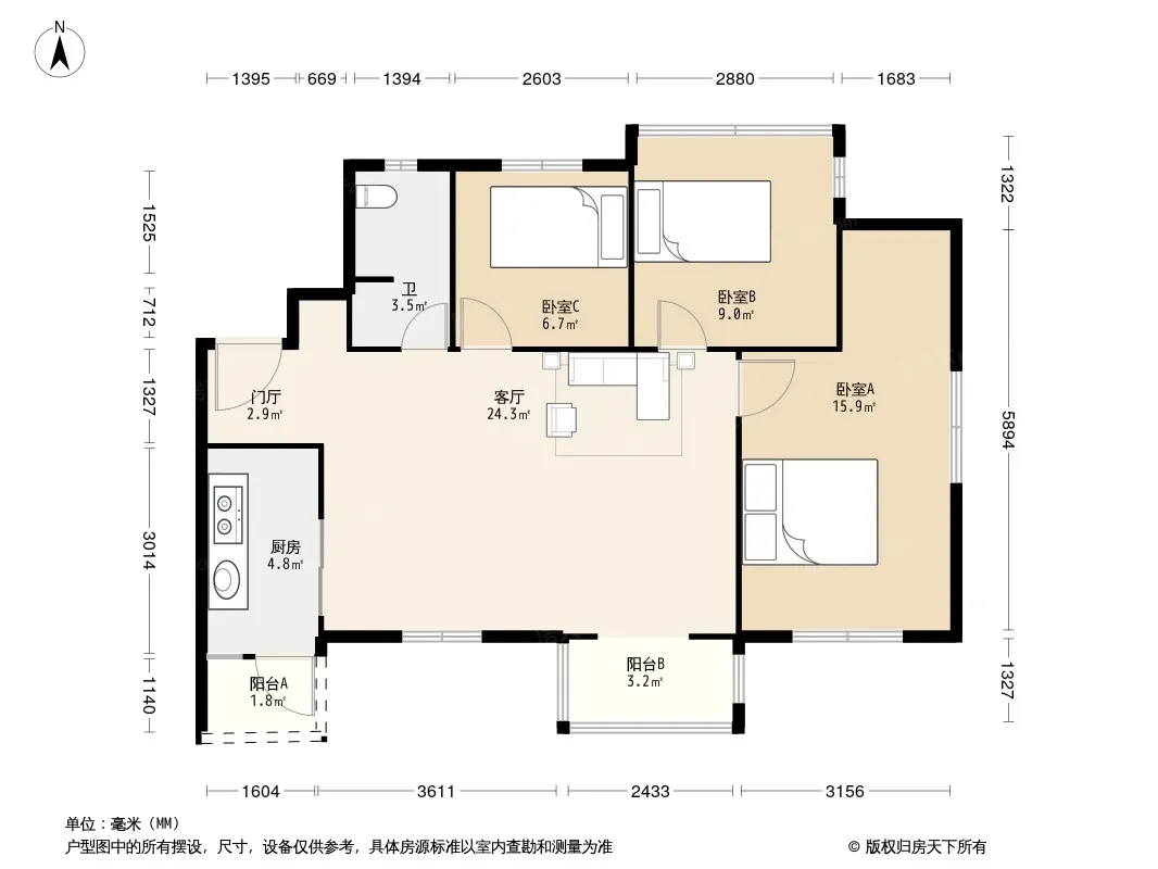 合能珍宝琥珀3期 3室2厅 南