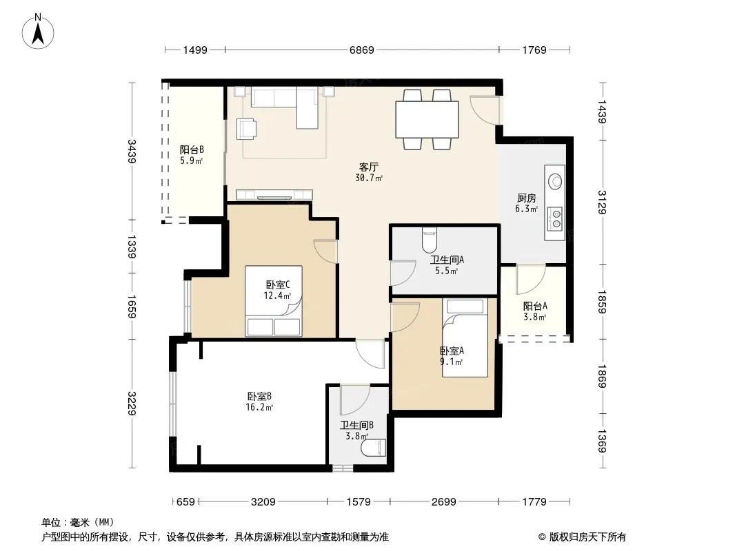 户型齐全,主打明厨,明卫三居