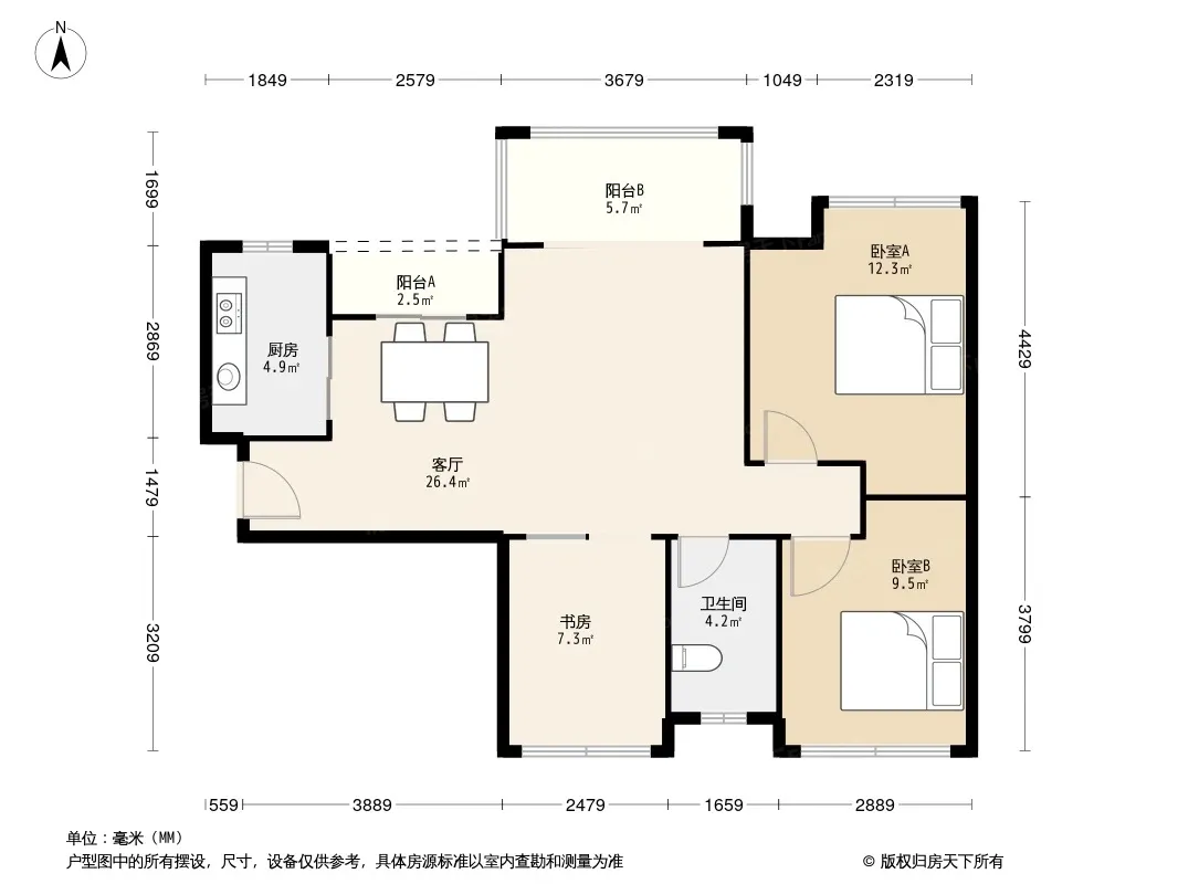 户型齐全,主打双阳台,双卧朝南,主卧朝南三居