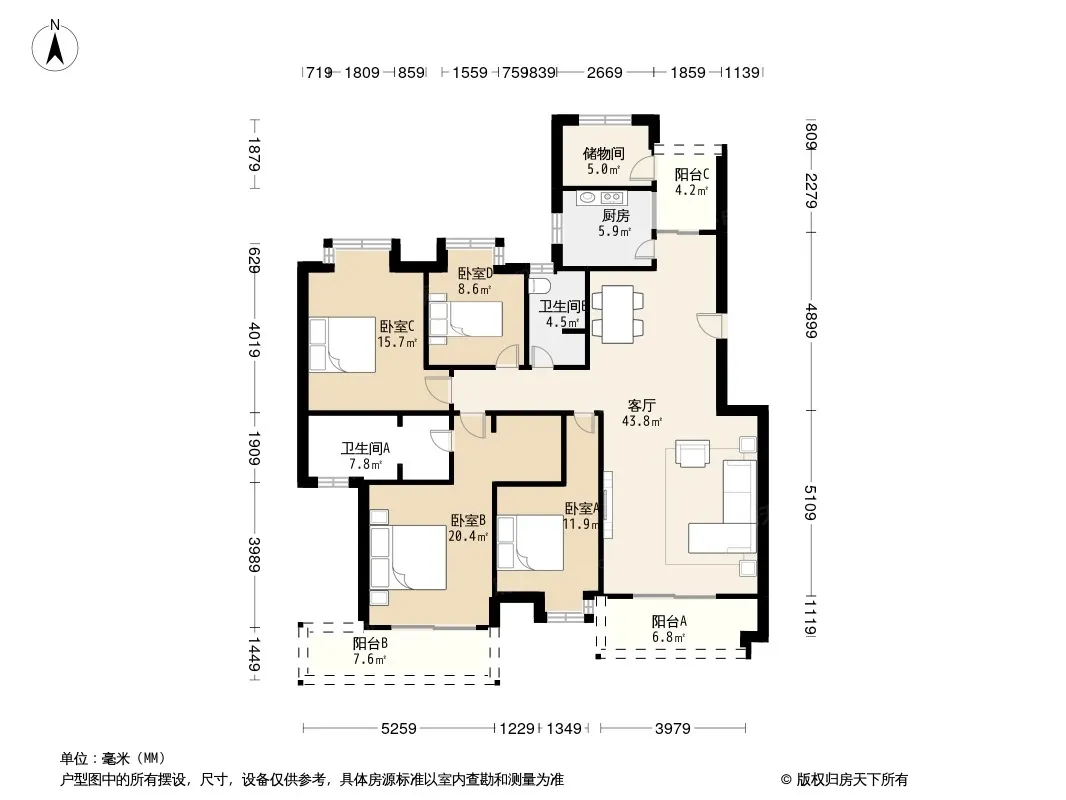 户型齐全,主打明厨,明卫,独立衣帽间四居