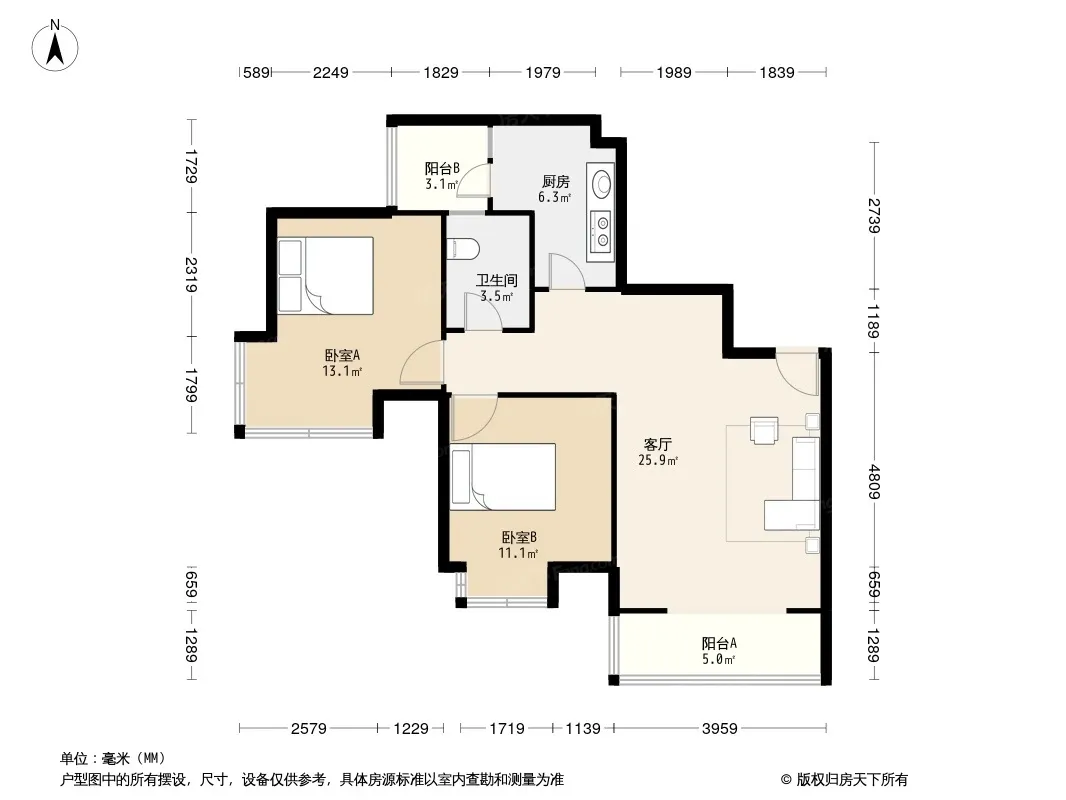 幸福家园碧云天 2室1厅 南