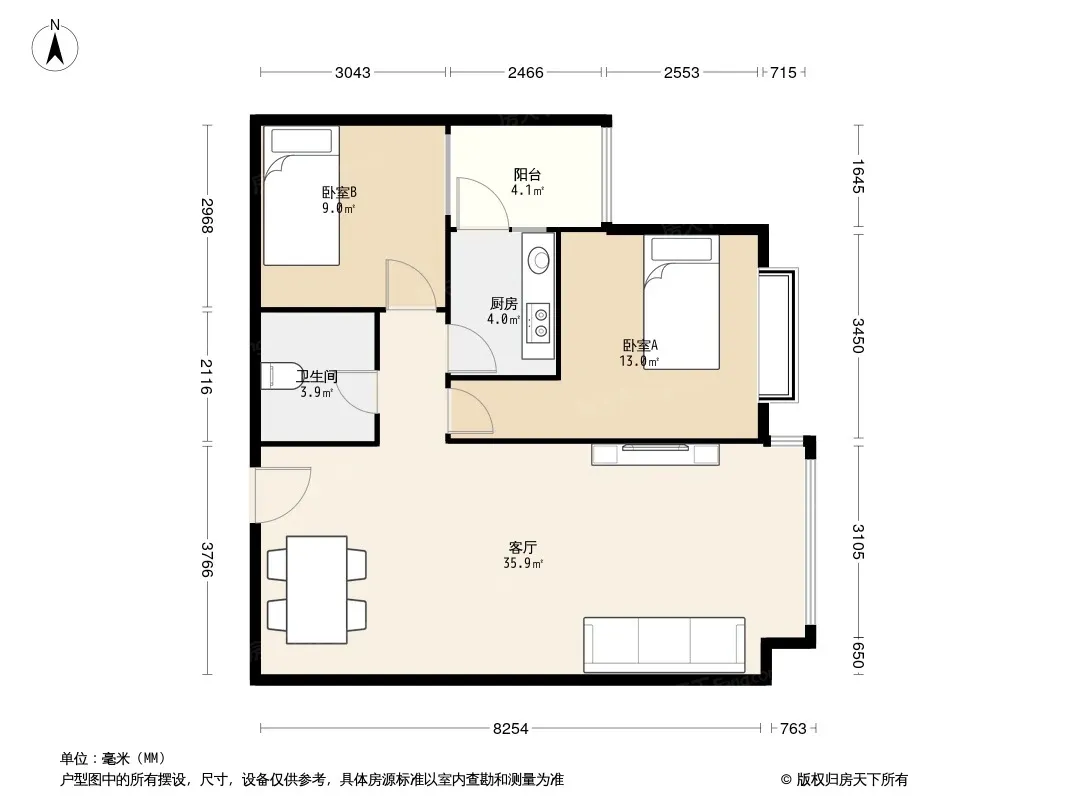 户型齐全,主打主卧朝南二居