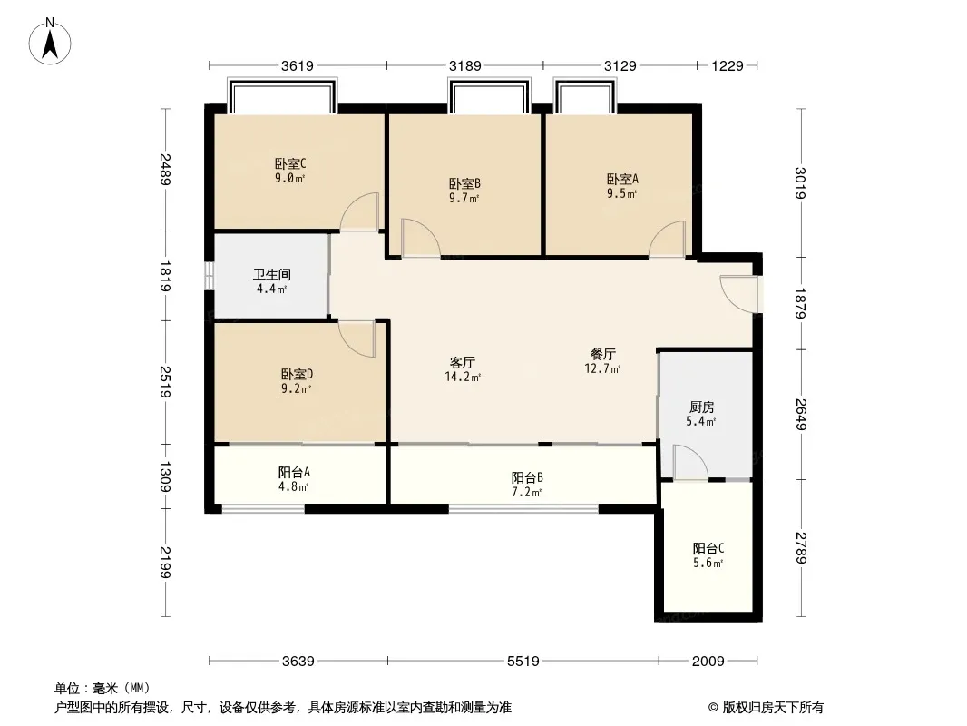 慧生时代广场 4室2厅 南