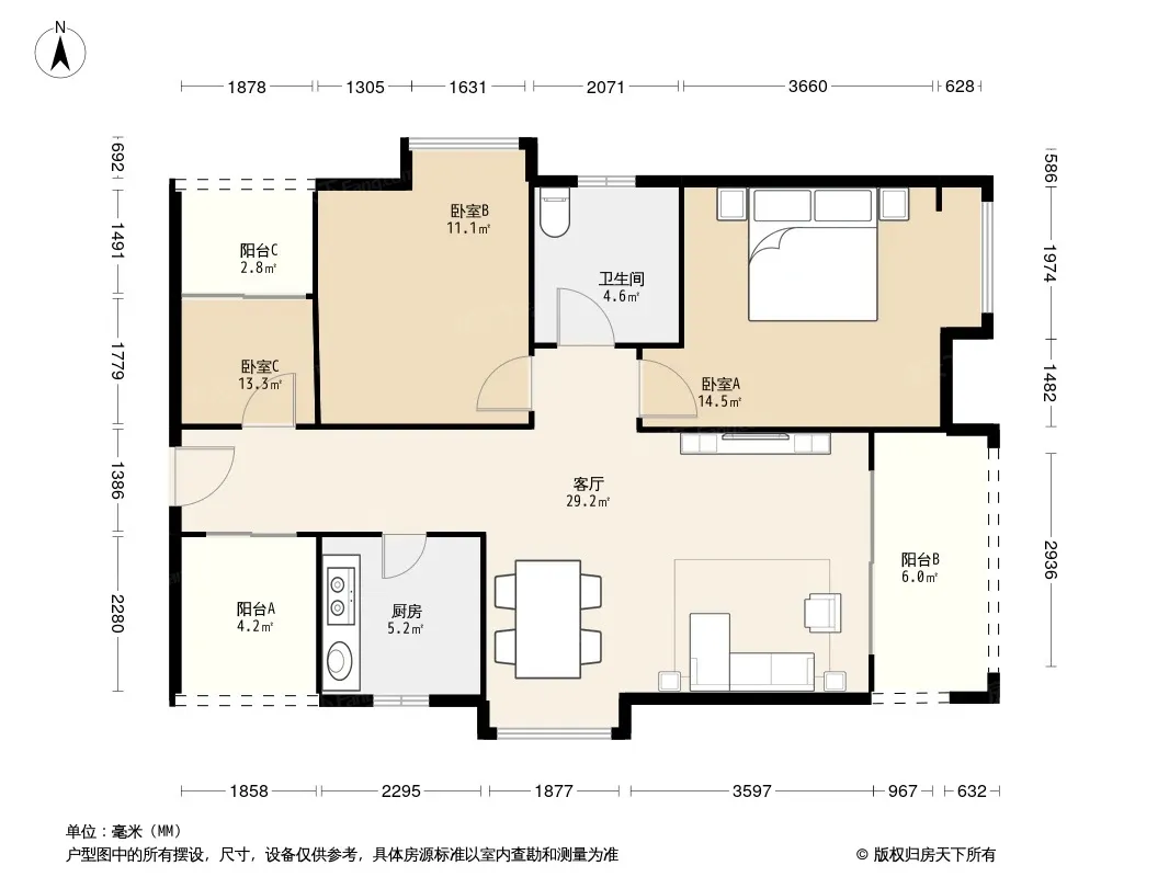北斗七星城 3室2厅 南