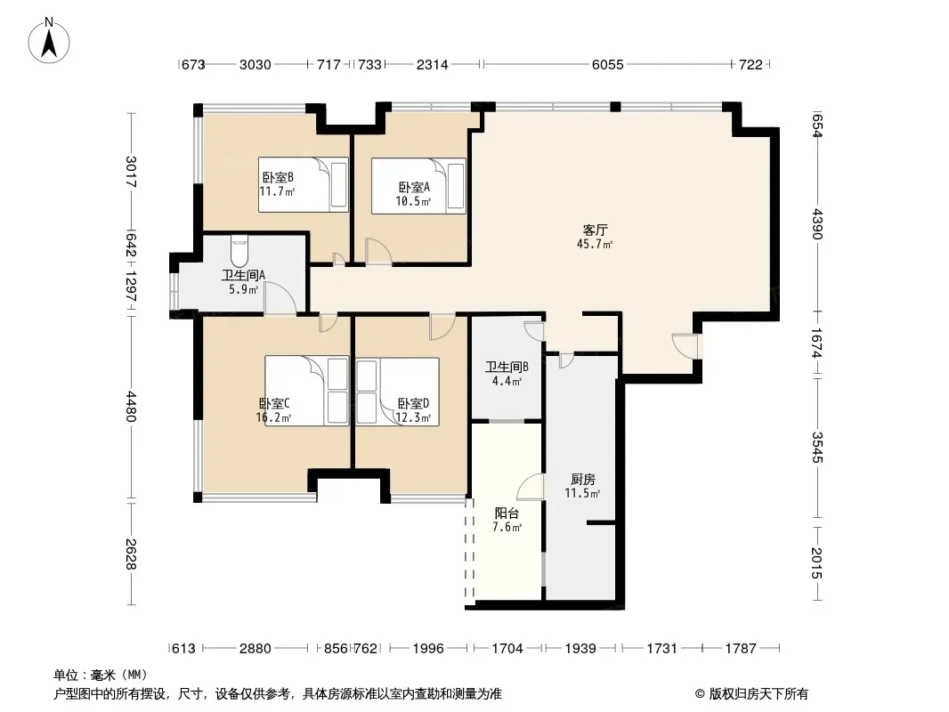 蓝花楹 4室2厅 东南