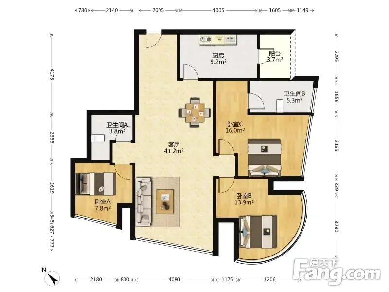恒大广场3室2厅南北