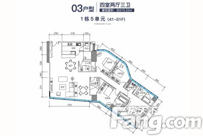 恒大广场 4室1厅 东南