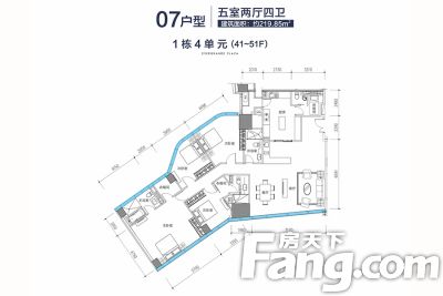 恒大广场 5室2厅 东南