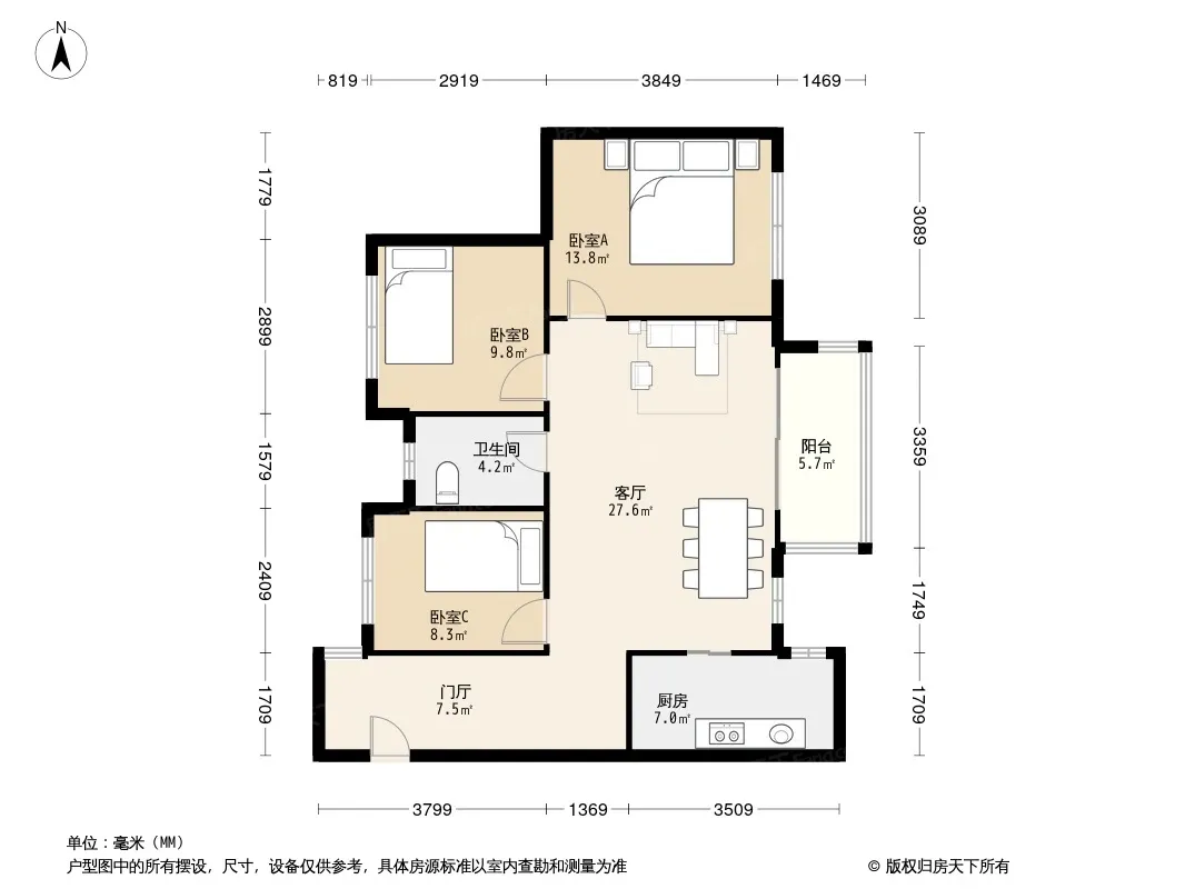 世茂城四期 3室1厅 南