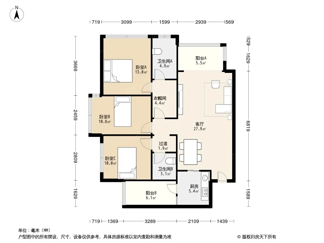 户型齐全,主打明卫,明厨,客厅朝南,全明格局三居