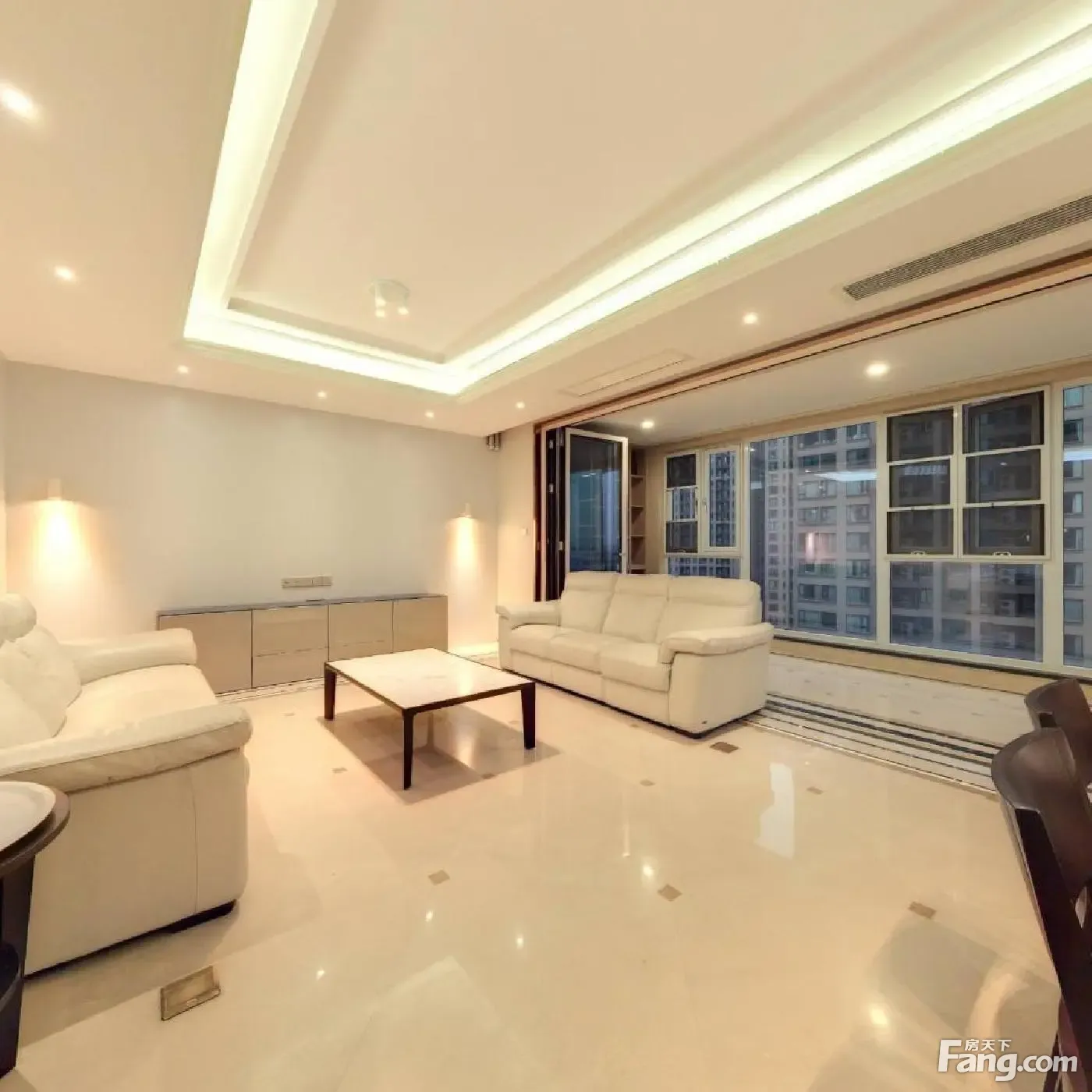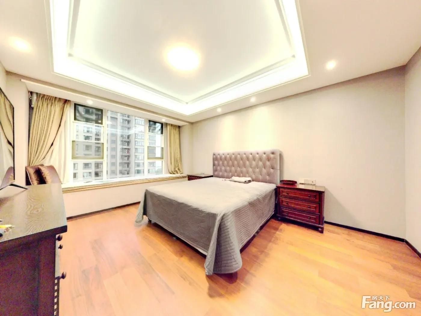 此房是185平米的套三+书房,朝南对中庭,横厅设计景观阳台有15.7平米,中间楼层可正看小区中庭,主卧和衣帽间朝南,两个次卧朝北,动静分区,房子安静。业主很多细节做得好,很多地方做了美化,连生活阳台