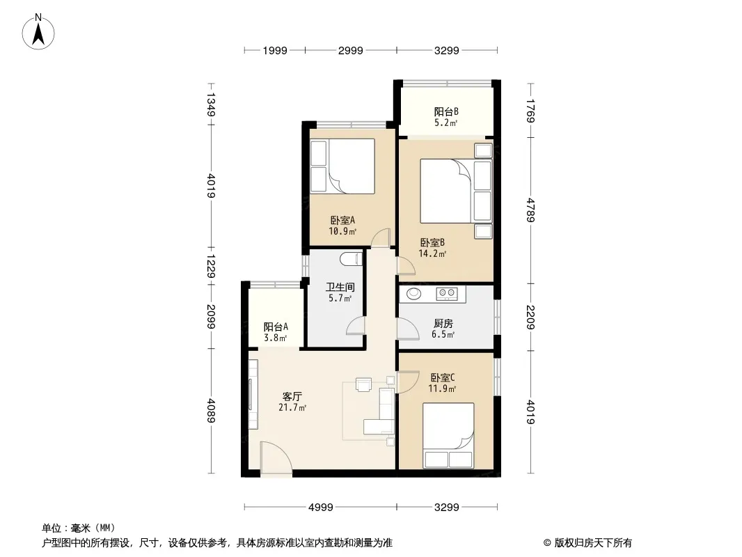户型齐全,主打明厨,双阳台三居
