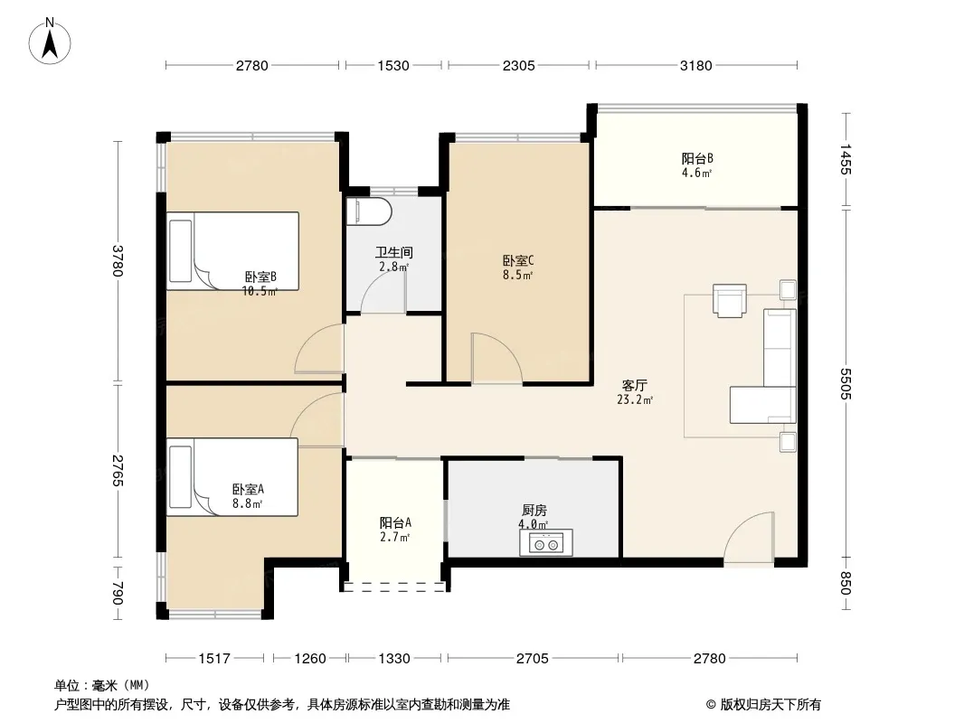 户型齐全,主打明卫,双阳台三居
