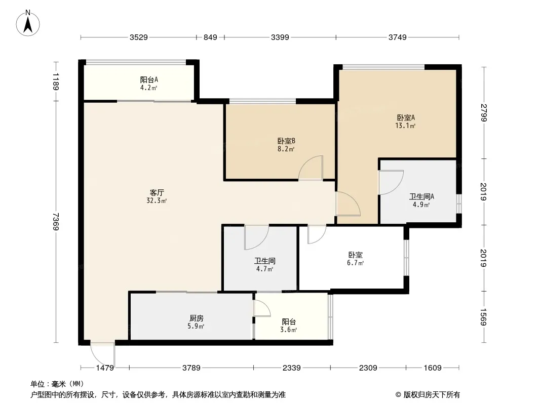 户型齐全,主打观景飘窗,双阳台三居