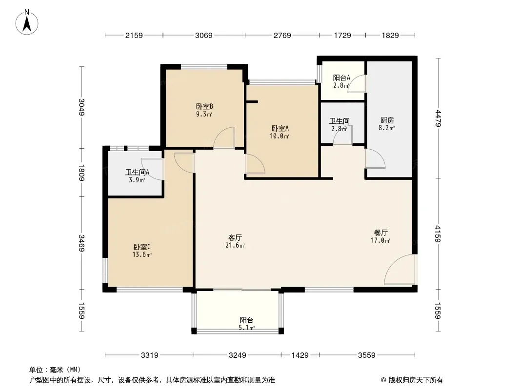 户型齐全,主打南北通透,全明格局三居
