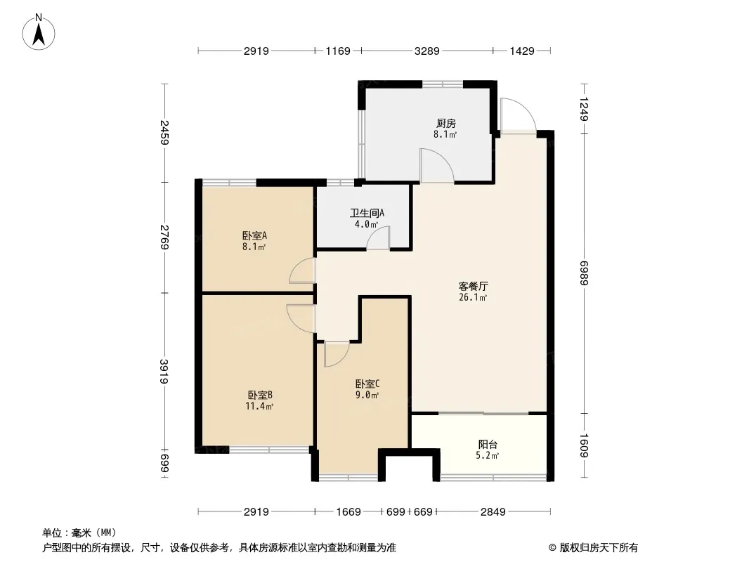 户型齐全,主打南北通透,全明格局三居
