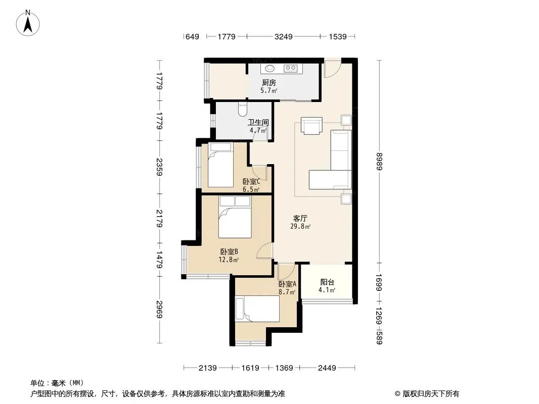 户型齐全,主打客厅朝南,主卧朝南三居