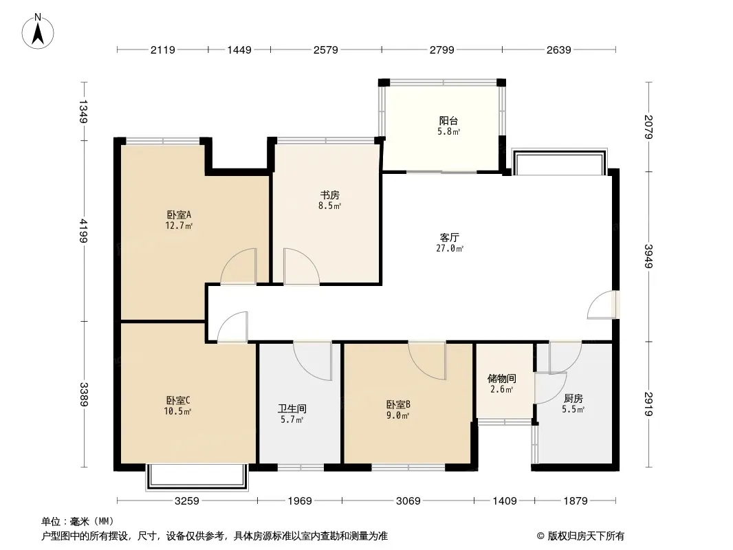 户型齐全,主打全明格局,双阳台三居