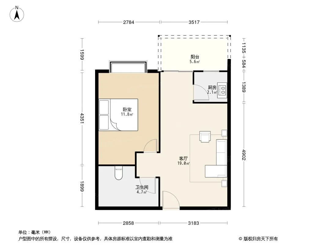 秀舍天涯 1室1厅 东南