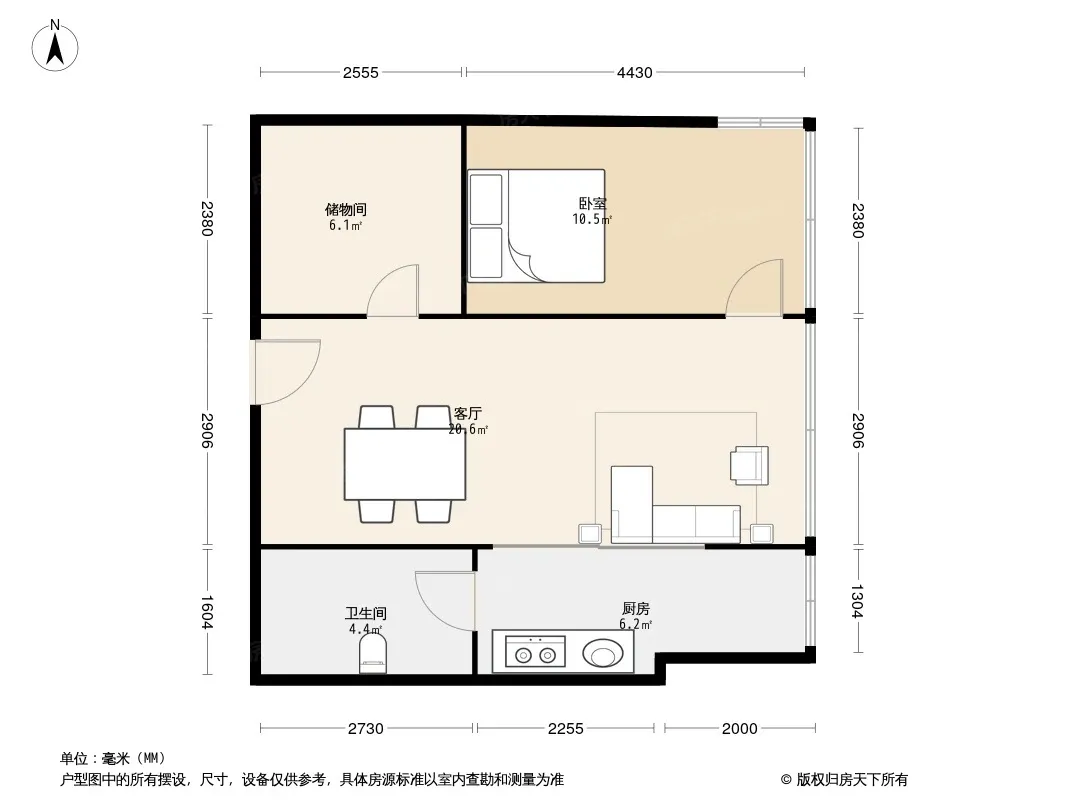 户型齐全,主打明厨,客厅朝南二居