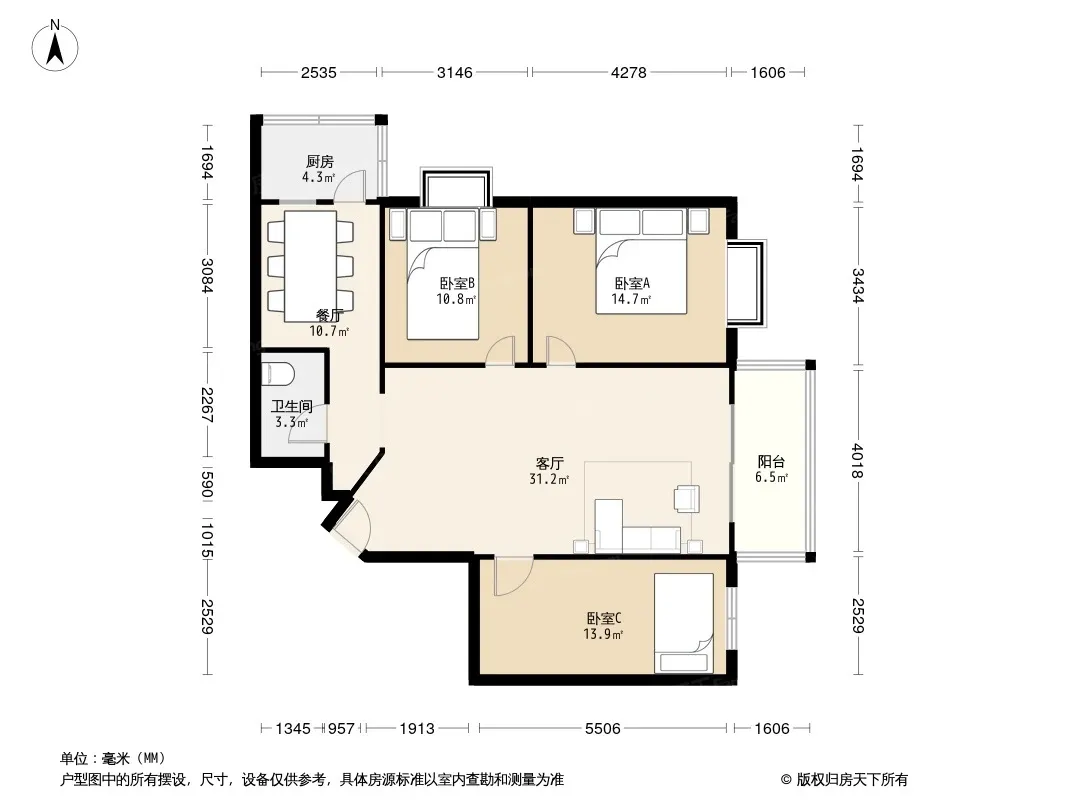 户型齐全,主打明厨,客厅朝南,双阳台三居
