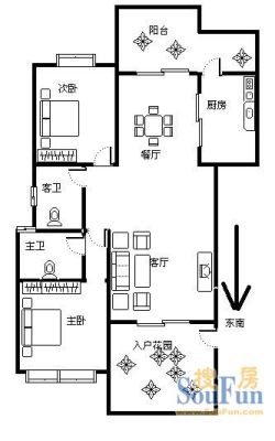 户型齐全,主打明卫,明厨,客厅朝南,双阳台三居