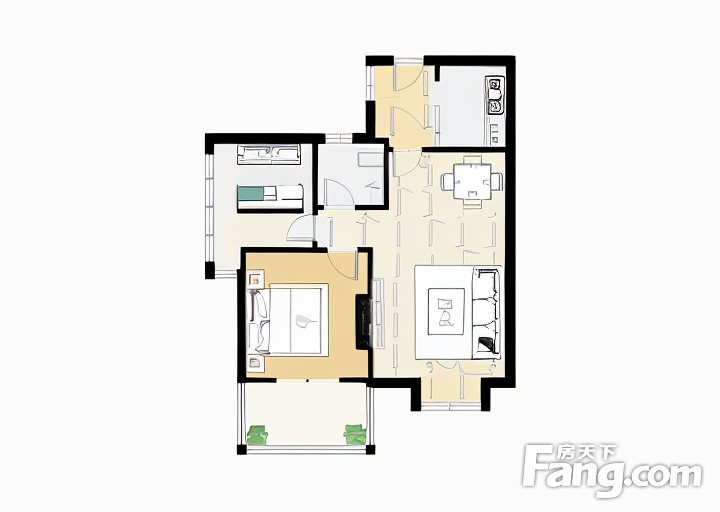 户型齐全,主打客厅朝南二居