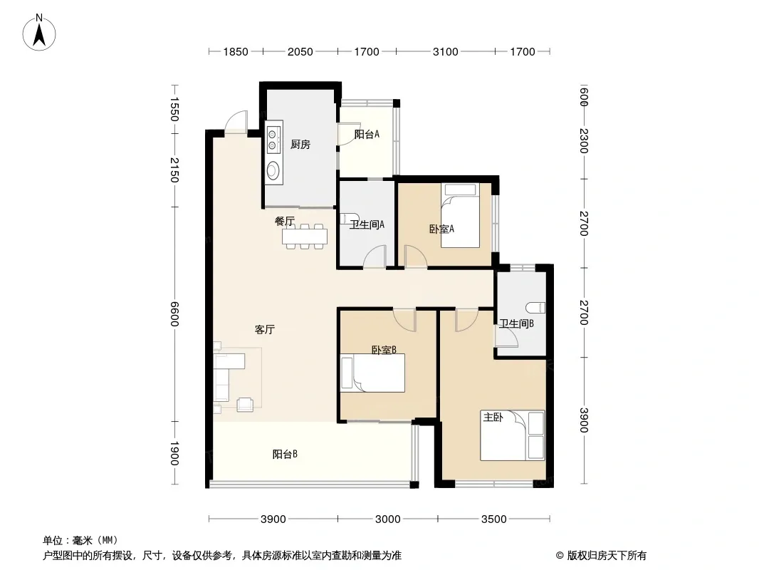户型齐全,主打全明格局,户型方正,采光充足三居