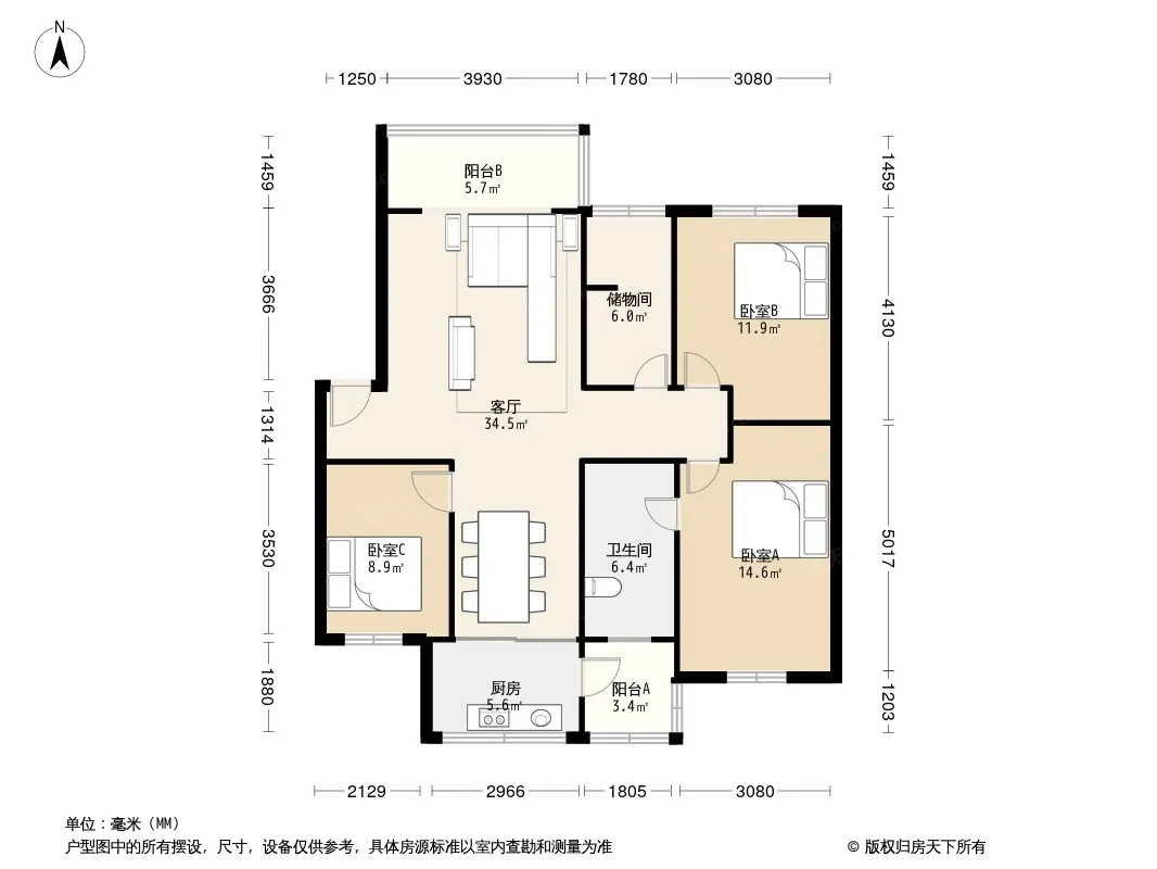 户型齐全,主打明厨,客厅朝南,主卧朝南三居