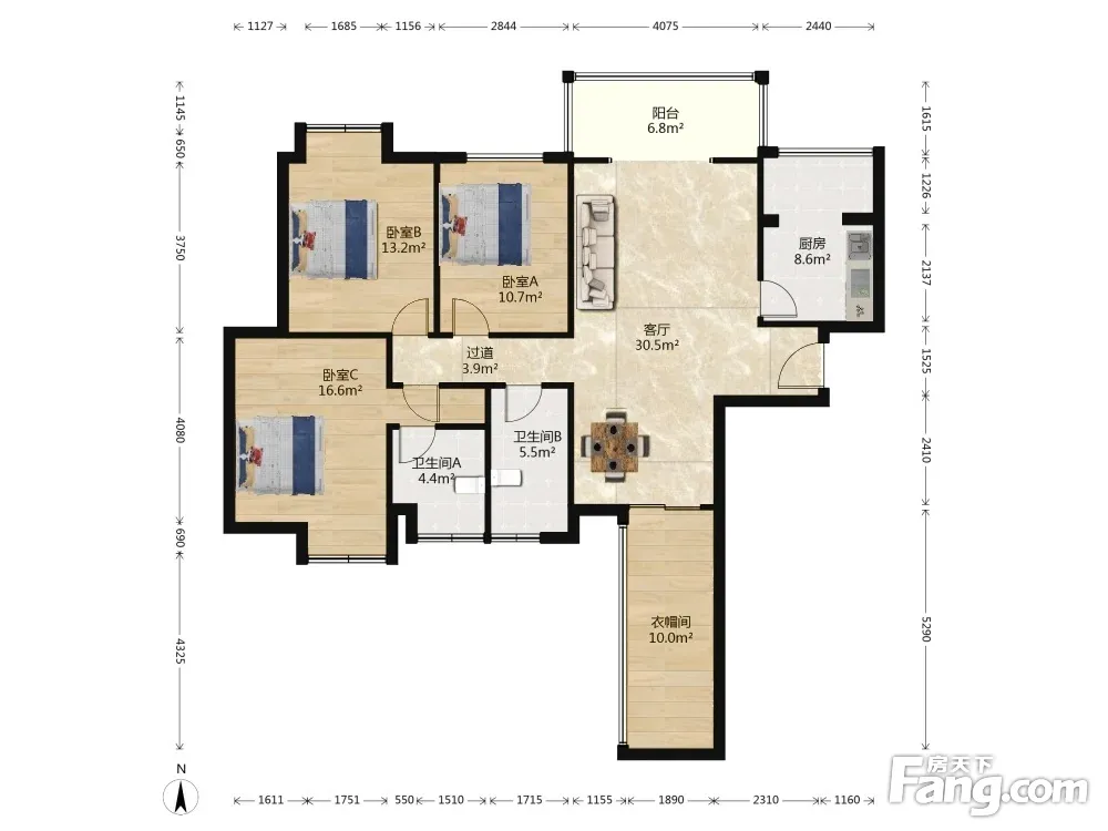 新里柏仕公馆 3室1厅 北 东北