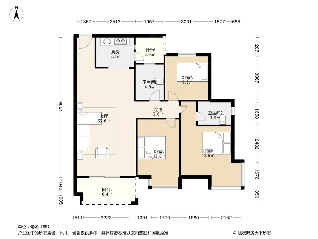 户型齐全,主打户型方正,明卫,双阳台三居