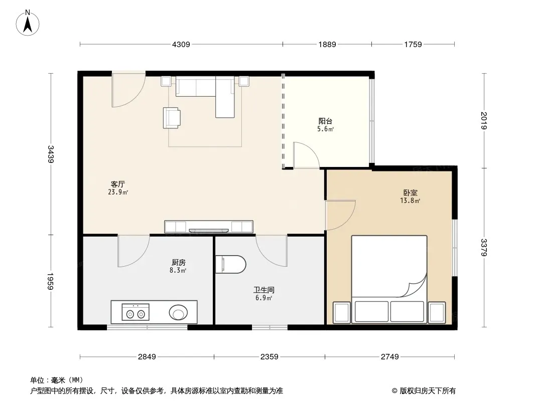 户型齐全,主打明厨,客厅朝南二居