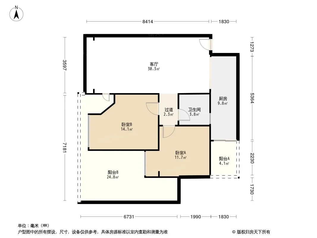 双楠尚品广场 2室1厅 西南