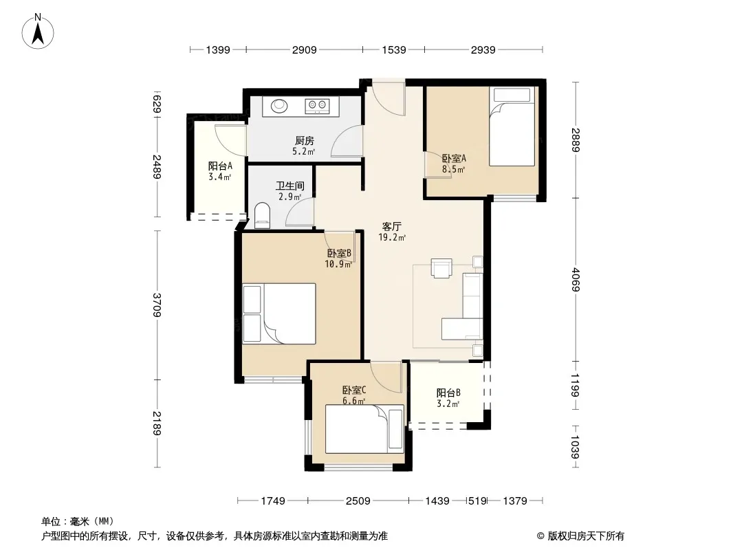 户型齐全,主打户型方正,主卧朝南三居