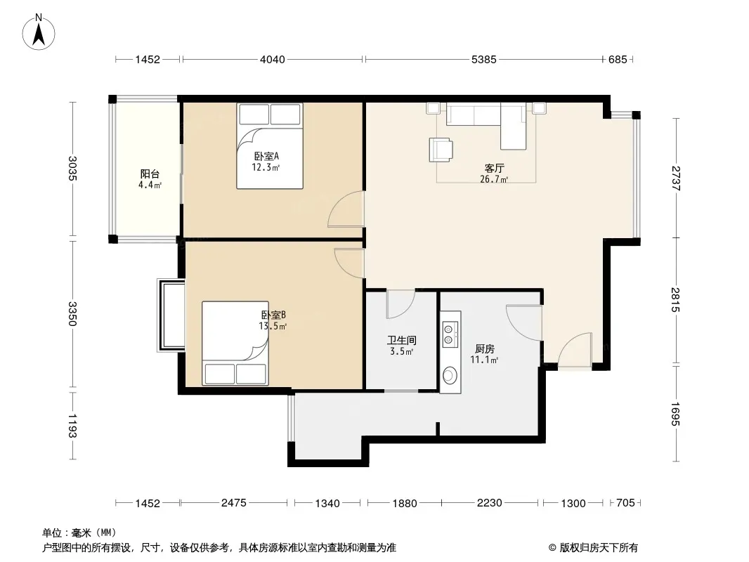 户型齐全,主打客厅朝南二居
