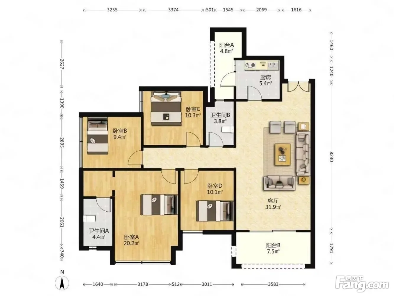 房屋户型方正,景观布局合理,设计实用,空间舒适,格局优越,采光通风良好