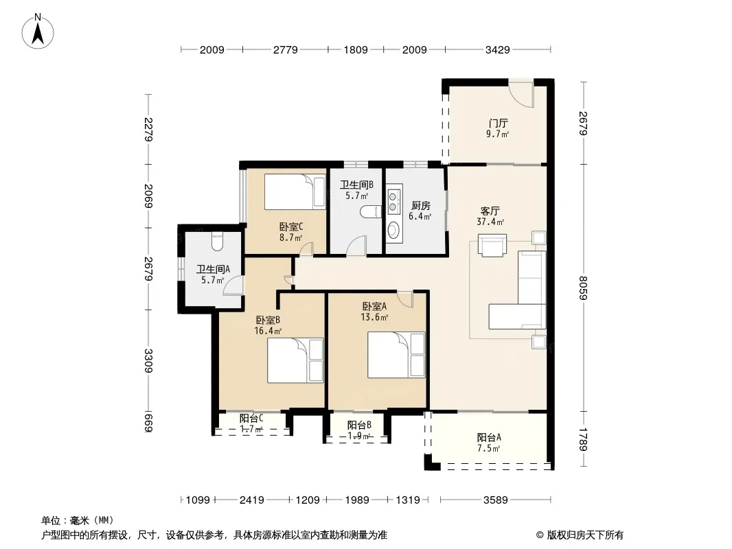 *获取完整户型报告,同时会有免费语音讲解服务